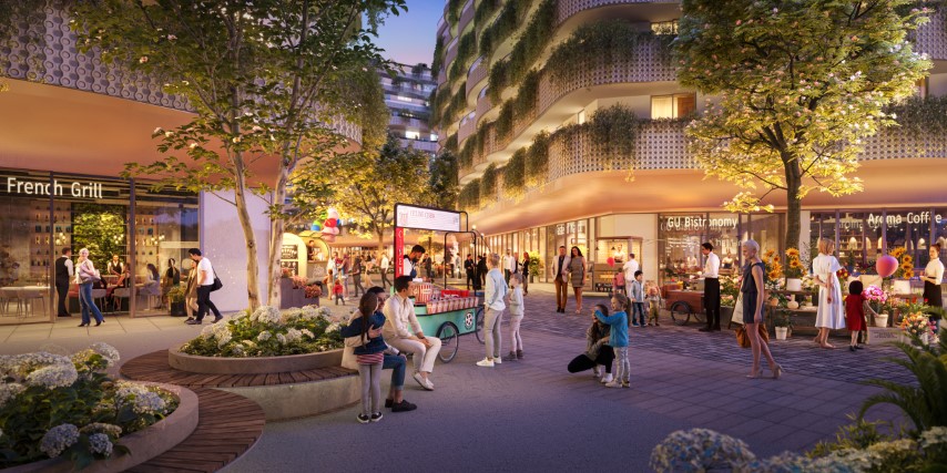 Retail benefits from being part of a fully integrated mixed-use development, combining residential, office, leisure, and public spaces to support consistent footfall throughout the day.